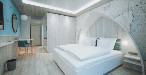 De perfecte accommodatie voor je kuurvakantie is het Hotel Victory. Het prachtige hotel ligt direct in de Therme Erding in de palmlagune van het golfslagbad. Vanuit de kamers heb je een fantastisch uitzicht op het turkooisblauwe water of het groen rondom de therme. Het hele Hotel heeft een scheepsontwerp en de kamers geven je het gevoel dat je op een oceaanjacht, een historisch groot schip of in Venetië bent. Het beste aan het hotel is de directe toegang tot de thermale baden. Je loopt door de lobby direct het golfslagbad in - dat Zuidzeegevoel.