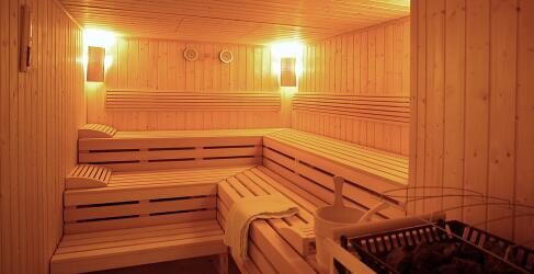 Sauna en ontspanningsruimtes met panoramisch uitzicht op het meer